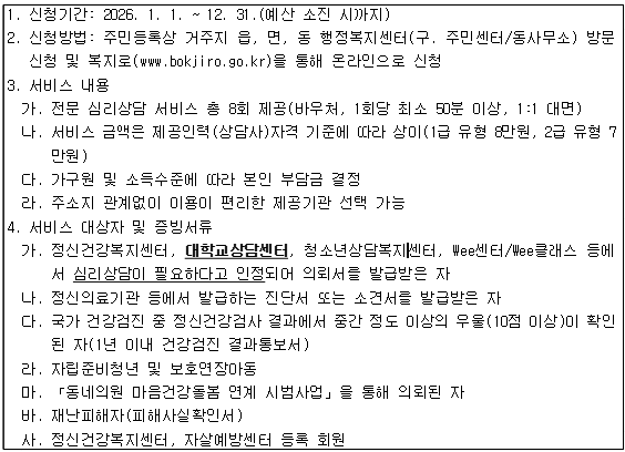 [학생상담센터] 2026년 「정신건강 심리상담 바우처사업」 안내