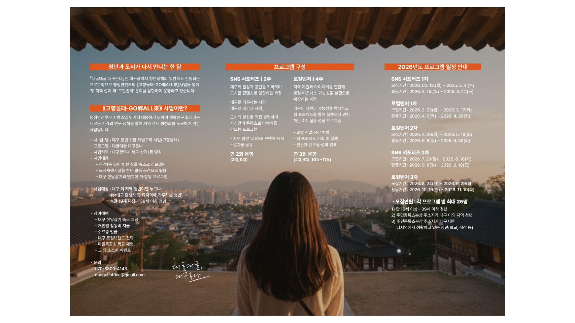 「청년 귀환 채널구축 사업(고향올래)」대구 한달살기 프로그램