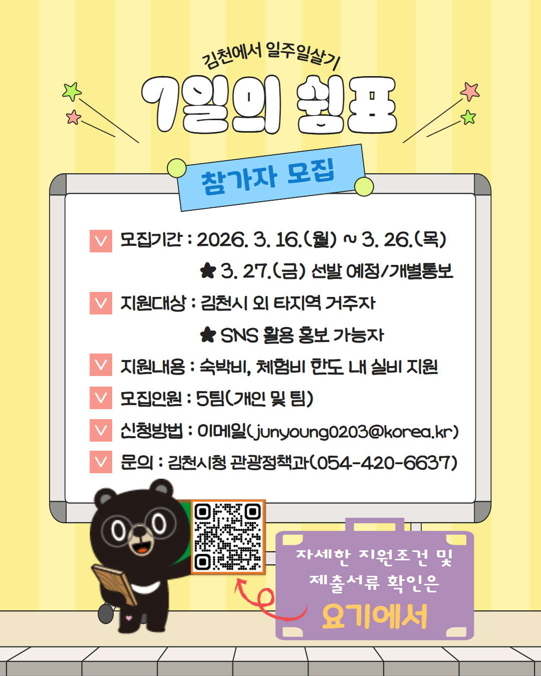 김천에서 일주일 살기「7일의 쉼표 in 김천」4월 참가자 모집