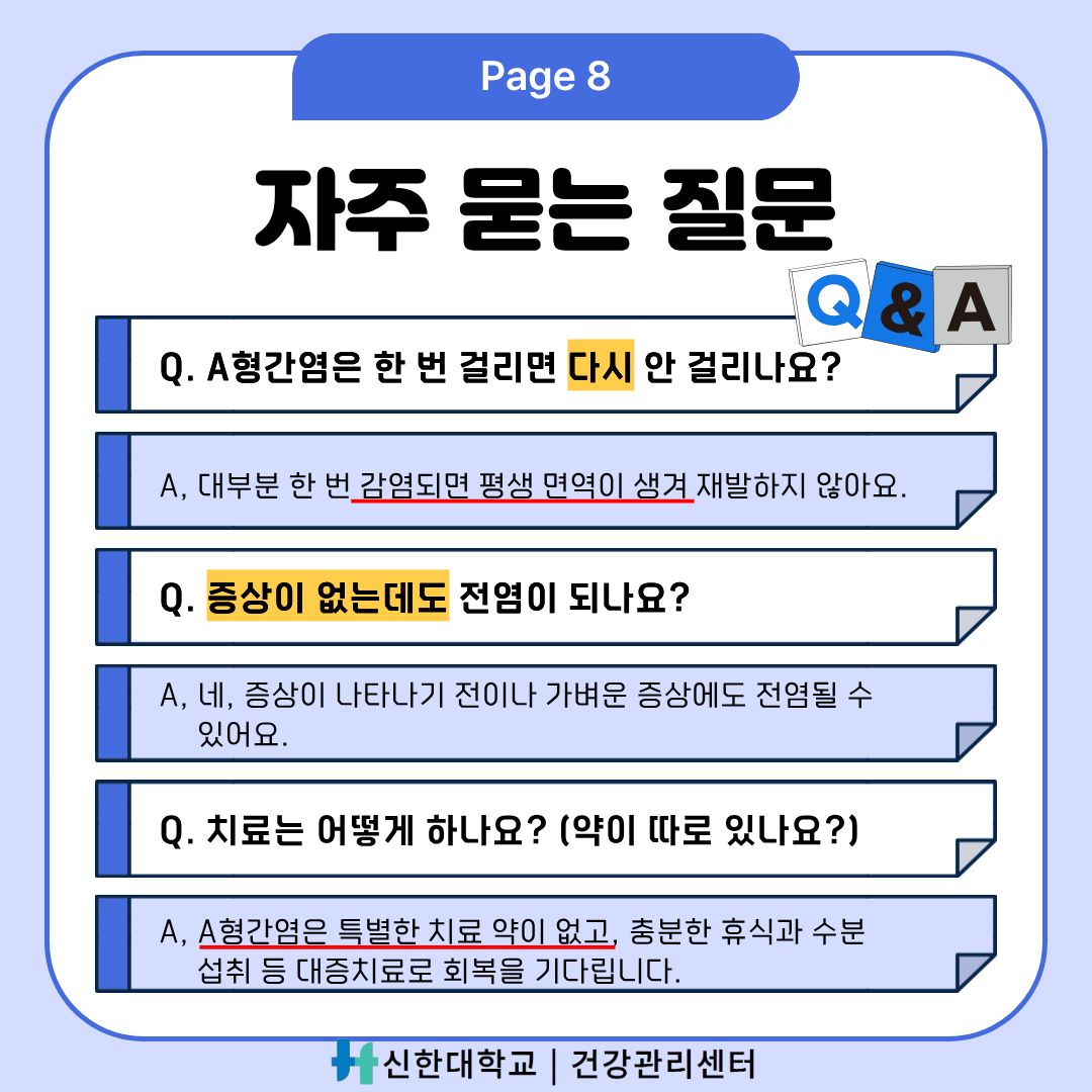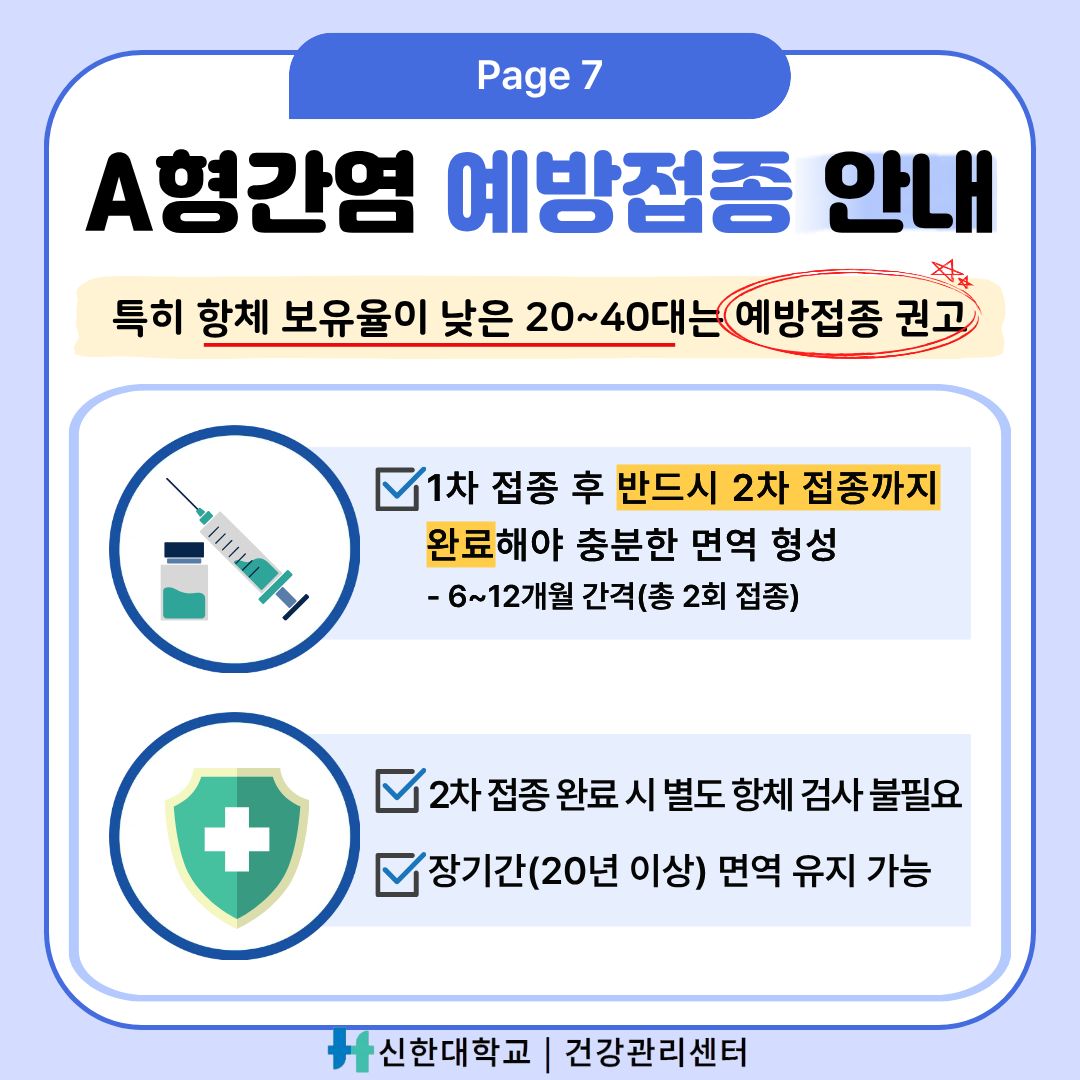 [건강관리센터] 건강정보 카드뉴스-"단체생활 시작! A형간염 예방하기"