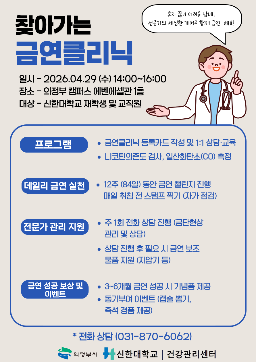 「2026년 찾아가는 금연클리닉」을 다음과 같이 운영하오니 많은 관심과 참여 바랍니다.